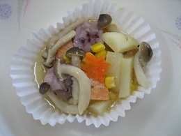 シーフードの方が好きという子もいて、今日もみんな早く食べ終わりました