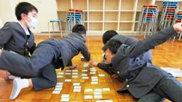 百人一首は,毎年恒例の,児童が楽しみにしている行事です。多くの児童が,毎年,得意札を増やすために努力しています。学年が上がるにつれ,その札の枚数も増える訳ですが,中には,低学年の時点で100枚覚えてしまった児童もおり,対戦相手は運が悪かったということになったりします。最後までシーソーゲームだった組もあれば,何と100対0という悲惨な組も!(お手つきをすると1枚相手に渡さなければならないため,そんなことも起こりうるのです。)今年はコロナ対策で,低学年と高学年が,2つの会場に分かれて行いました。来年は,また全校で一緒にできればいいですね。