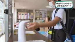 小学校の玄関では,マスクをした子どもたちが久しぶりに顔を合わせた先生に元気にあいさつし,手を消毒した後,自宅での検温を記録した用紙を見せていました。