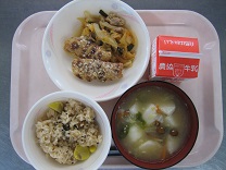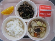 しその入ったごはんは、ちょっと苦手という子もいるようですが、だんだん食べ慣れていく子がほとんどです。にくじゃがは家でも学校でも人気のおかずかもしれませんね絵文字:笑顔
