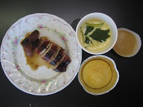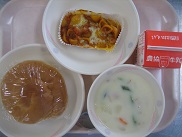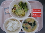 今日は献立ボードの前で「ポテトの味噌マヨネーズ焼き、大好き~。」と言っている子がいました。ちょっと手間はかかりますが、おいしくできました。デザートのミルクレープは初めてでしたが、喜んでもらえたようです絵文字:良くできました OK