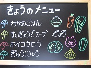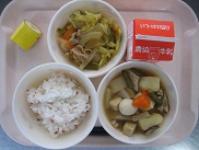 今日はたくさんの材料を使った、和風メニューでした。苦手な食材がある子もがんばって食べていました。給食で練習して、すききらいをなくしましょう絵文字:キラキラ