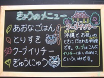 今日は、沖縄料理の「クーブイリチー」を出しました。クーブは昆布、イリチーは炒め煮という意味だそうです。昆布を美味しく食べられました。とりすきも、あまから味で子どもたちが好む味でした絵文字:四人絵文字:ハート