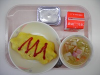 今日は、自分で包んで食べるセルフオムライスでした。ケチャップで自分の名前をかいたり、ハートやニコニコ顔をかいたり、思い思いに楽しんでいました。今日も残食ゼロで、時間も早めに終わりました