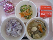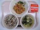 今日はひじきごはんが人気がありました。おかわりもたくさんの子がしていました。かき揚げの甘えびは、殻ごと使われていて、ちょっと苦手そうにしている子もいましたが、殻にも栄養がいっぱいあるよというと、がんばって食べていました