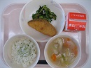 おさかなの出る日は、ちょっとユウウツな子がいるようです。「骨がありますか?」と聞いてくる子もいます。「おさかなだから骨はあるけど、よくかんで食べると大丈夫だよ」と声をかけます。
