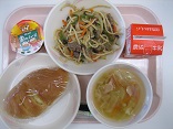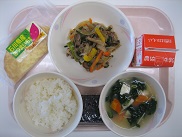 少し時間がかかる子もいましたが、今日も全員残さず食べることができました。牛肉としめじ、野菜を使った、しょうゆ味の和風スパゲティもおいしかったです