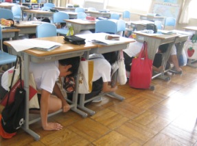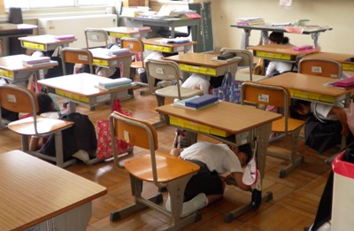 火災の原因は地震であると想定し、休み時間に予告なく行ったため、