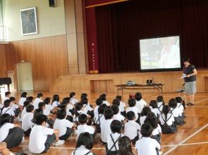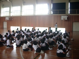 昼休みで教室・体育館・運動場など様々な場所にいた児童が