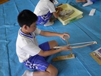 古和秀水では、行きの道で拾った草木をつかって制作活動をしました。