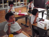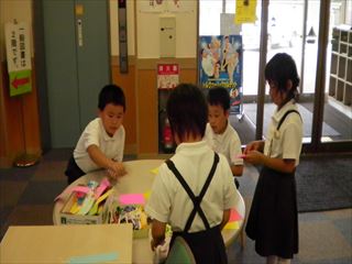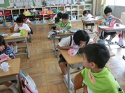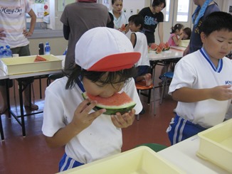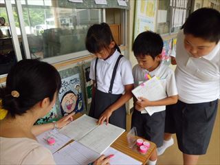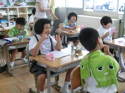 久しぶりに登校した児童は日焼けし、身長もぐんと伸びたような印象を受けました「○○行った」「カブトムシとった」「毎日手伝いしとる」などの声が聞かれ、児童は夏休みに学校ではできない経験をたくさんしているようでした