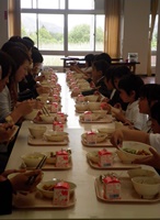 おうちの人が早起きして作ってくれたお弁当をみんな美味しそうに食べていました