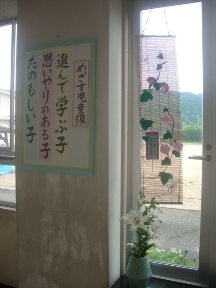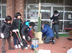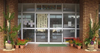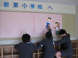 1年教室や体育館,廊下の掲示などみんなで飾り付けをしました。