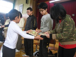 下級生の心を込めた贈り物に涙を流す6年生も・・