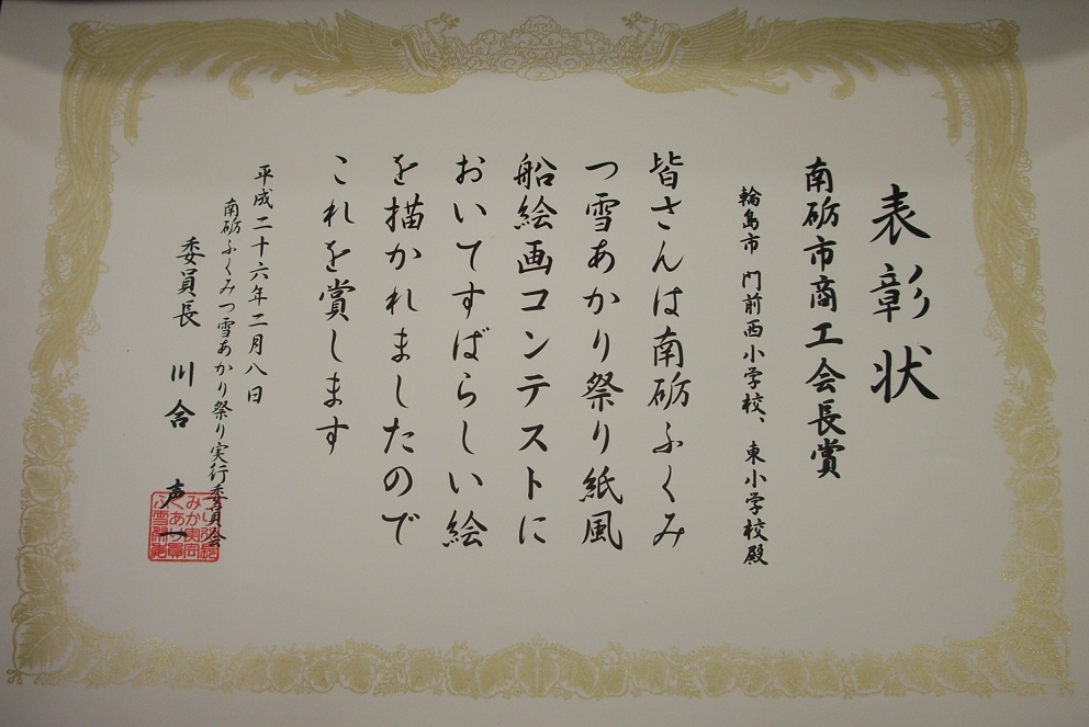そして、今年は、すばらしいことに団体賞三賞トップの優秀賞をいただきました。子ども達、がんばりました!何事にも一生懸命取り組むと、いつかいいことが訪れるものですね。
