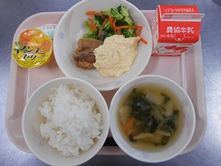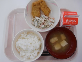 今日は、輪島でとれたふぐのフライ、加賀れんこんを使ったれんこんサラダ、