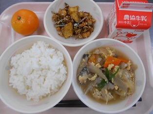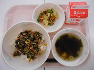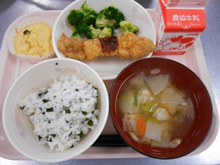 大豆と小魚のごまからめに、先日、門前西小学校のみなさんから