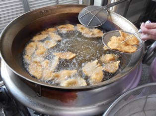 ひとつひとつ丁寧に、小麦粉・たまご・パン粉をつけていきました。