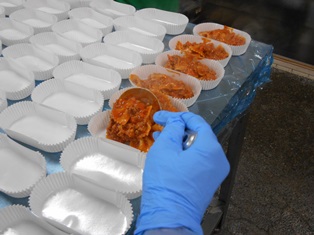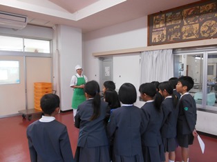 今日の1限目に、門前西小学校の1、2年生の児童が門前共同調理場に