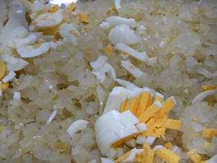 たまごとたまねぎに、マヨネーズ、塩・こしょう、パセリを加えて完成です。