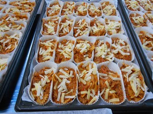 今日のラザニアのマカロニは、「ファルファッレ」というリボン型の