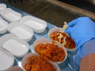 トマトケチャップ、デミグラスソースなどで味付けをした具材を