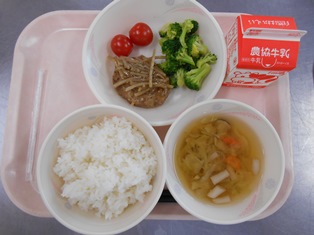 今日は、ハンバーグのごぼうソース給食です。