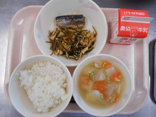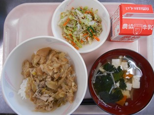 プールの授業から戻ってきた子どもたちが、「今日は、ぶたどんだ」と言っていきました。