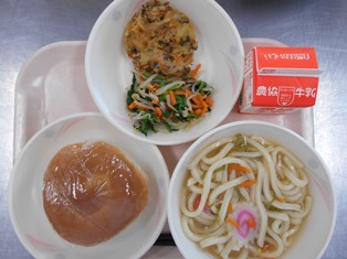 プールの授業から戻ってきた子どもたちが、「今日は、ぶたどんだ」と言っていきました。