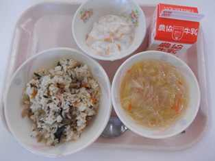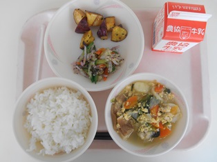今日は、輪島でとれたさざえ、ふぐ、もずくと、門前でとれたじゃがいもをたくさん使った「輪島の日給食」です。