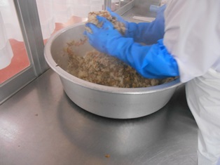 調理員さんたちが作っているところを、興味津々に見て行きました。