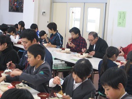 今日は、門前東小学校のランチルームに来ていただいて、給食を味わってもらい、子どもたちも嬉しそうでした絵文字:四人
