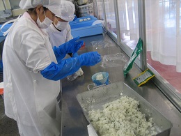 おにぎりは小学校1年生から中高生まで、学年毎にごはんのグラム数が違うので、調理員さんは秤で重さを確認しながら、ひとつひとつ握ってくれていました絵文字:ハート