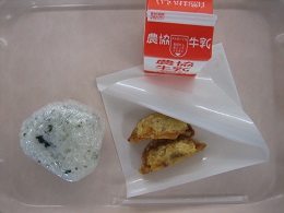 午後からも授業があり、おにぎりと牛乳だけではおなかがすくのではないかと思い、給食室で話し合って当初の予定に入っていた「かほっくりチーズコロッケ」も出そうということになりました絵文字:笑顔
