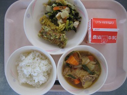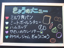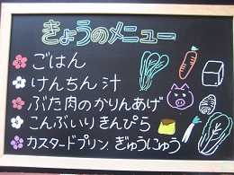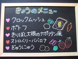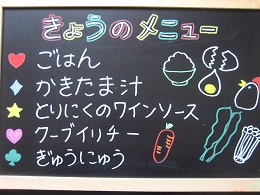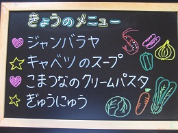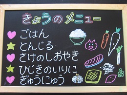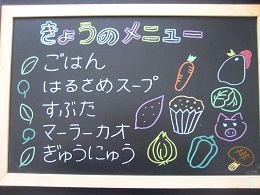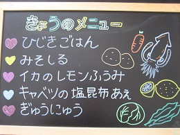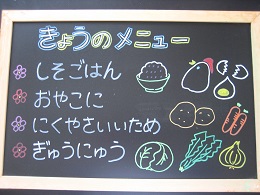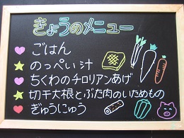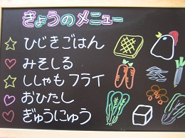 ちくわが苦手な子がいて、今日も半分まで食べたところで、お箸がとまっていましたが、「いつも苦手なものでもがんばって食べているね~