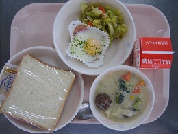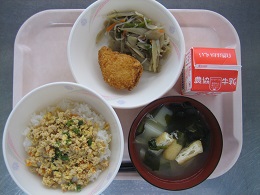 今日も残っていましたが、エビカツ美味しかったよと声をかけると、食べてみて、美味しかったようで残さずに食べることができていました