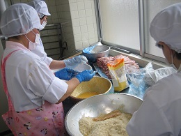 衣は、小麦粉、片栗粉、米粉、スキムミルク、塩、こしょうを合わせて作りました