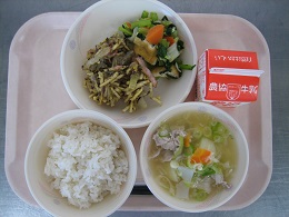 さつまいも、玉ねぎ、ハム、ひじきに塩とこしょうで味つけをし、小麦粉、米粉、卵で作った衣をつけて揚げました