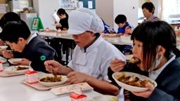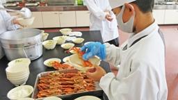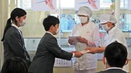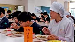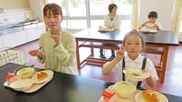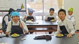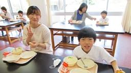 この日は,毎日おいしい給食を作って下さっている給食調理員の方々をお招きし,一緒に給食をいただきました。本当は,調理員さんは4名おいでるのですが,柴田さんと桶本さんは他校への配送中のため,上森さん(中写真)と中村さん(右写真)のみが参加してくれました。はじめに,全校児童からの心のこもった手紙をお渡ししました。そして次は会食。コロナ予防のため無言給食なのでおしゃべりはできませんが,感謝の気持ちを込めて美味しくいただきました。メニューは,「能登牛スペシャルカレー」。児童たちも調理員の方々も,みんな笑顔でした。(「今日の給食」ページもご覧下さい。)