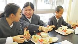 「今日の給食」ページにも紹介されていますが,この日の給食は,6年生限定ではありましたが,市から無料で,一人につき香箱がに一盃ずつ振る舞われました。(市内の全6年生が食べました。)他の学年の皆さんは,6年生になったら食べられるのでしょう。楽しみに待っていて下さい。6年生,本当に嬉しそうに食べていました。良かったですね。