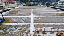 1月6日,年始に降った雪が一旦溶けました。運動場では,いつも最後に残る雪ラインが見られました。これは,安渠排水管(排水設備)が埋められているからできるものです。