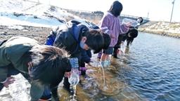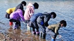 晴天に恵まれたこの日,全校児童が学校近くの八ヶ川へ,ヤマメを放流に行きました。児童たちは,ペットボトルで育てたヤマメ2匹ずつを,大切に川へ放してあげました。元気に育っていつかまたこの川に戻ってきてほしいですね。