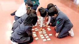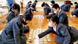 百人一首は,毎年恒例の,児童が楽しみにしている行事です。多くの児童が,毎年,得意札を増やすために努力しています。学年が上がるにつれ,その札の枚数も増える訳ですが,中には,低学年の時点で100枚覚えてしまった児童もおり,対戦相手は運が悪かったということになったりします。最後までシーソーゲームだった組もあれば,何と100対0という悲惨な組も!(お手つきをすると1枚相手に渡さなければならないため,そんなことも起こりうるのです。)今年はコロナ対策で,低学年と高学年が,2つの会場に分かれて行いました。来年は,また全校で一緒にできればいいですね。