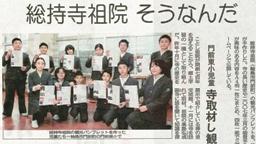本校の2年生が表紙と裏表紙に載りました。 2年生は,12月に總持寺を訪問し,感想文を書きました。この写真もその一環として撮影したものです。結果的に,大本山總持寺祖院にて開催されている「ワガサイロ」の宣伝にも繋がったかも?また,6年生の記事も掲載されました。