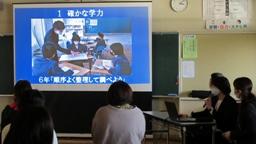 今年度初めての授業参観でした。2・3年と4・5年は,教師が複数の学年を指導するために学年間を移動する「わたり」を行う複式授業(算数)を公開しました。「わたり」のある授業を受けるようになって,まだまだ数週間。児童たち(と先生)は十分に複式授業になれてはいませんでしたが,それでも確実に自分たちで学習を進めなければいけないという自覚が表れてきていることが感じられました。次にお目にかける頃には,さらに成長した児童の姿をお見せ出来ると思います。お忙しい中,たっぷり半日もの長時間,授業参観,PTA総会,PTA専門委員会,学級懇談会と参加いただきました保護者の皆様,ありがとうございました。今年度もよろしくお願いいたします。