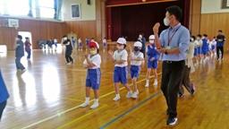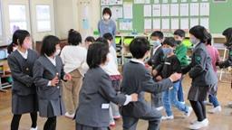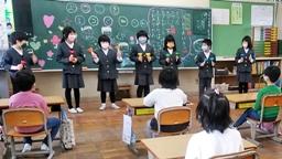 今年の迎える会は,これまでの学級ごとの発表形式をとらず,より「迎える」にふさわしい会に変更しました。6年生は,「学校の約束」を分かりやすくミニ劇風にして教えてくれました。1年生は,自分の好きなものの絵を手に,自己紹介をしてくれました。その後,3~6年生が迫力の鼓笛演奏をしてくれました。1年生たちは,圧倒されていました。最後に全校児童が3グループ(各委員会)に分かれ,「だるまさんが転んだ」をしました。例年であれば体育館で完結する送る会ですが,今年は外に出て行いました。みんな嬉しそうでした。この会で気づいたのは,「6年生が1年生に本当に優しいな」ということです。「みんなが笑顔の門前東小学校」へ向け,絶好のスタートがきれました。