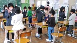 このあと,全校児童が,窓を開けて換気をした体育館に集まり,距離をとって整列して始業式が始まりました。