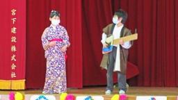プログラム4番 3・4年「能登麦屋節」 学習したことを詳しく発表してくれました。