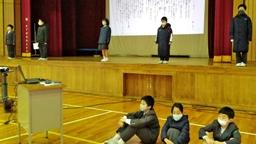 12月の児童集会での委員会発表が,6年生にとって最後の仕事でした。みんないつものようにしっかりと発表してくれました。次回からは5年生の仕事です。よろしくお願いします。学年発表は1年生。この日急にお休みした児童の分まで頑張ってくれました。ハンドベル演奏で,急遽新しい役割をもらった児童が,すごく緊張しながらも頑張っている姿が素敵でした。なお,今回の集会からジェットヒーターを使いました。たった一つしかありませんが,かなり効果がありました。