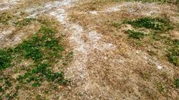 塩化カルシウムが思っていた以上によく効き,雑草がかなり減りました。今は,塩カルが直接触れている場所だけですが,今後の雨で塩カルが広がってくれたらと思います。改めて保護者の皆様に感謝です。この日は,ある程度竹箒で塩カルを広げ,運動会用のラインを引きました。
